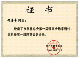 公司董事長(cháng)當選為南平市慈善總會(huì )副會(huì )長(cháng) 公司向南平市慈善總會(huì )捐資三十萬(wàn)元