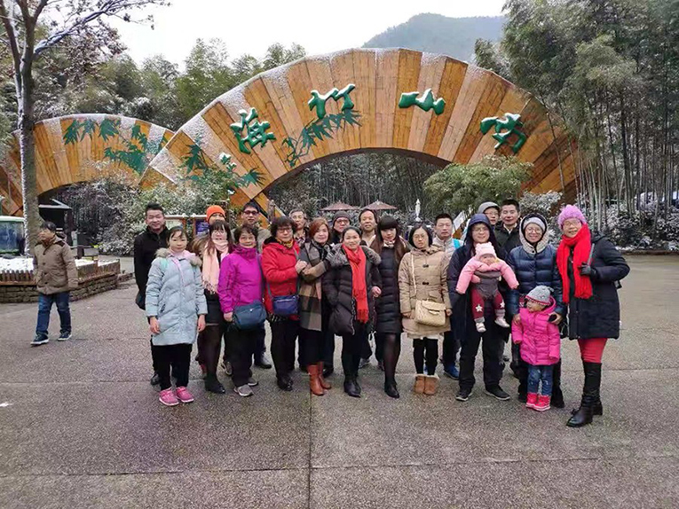 2019年1月上海虹潤公司全體員工懷著(zhù)辭舊迎新的愉悅心情分乘七輛小車(chē)前往江蘇溧陽(yáng)天目湖自駕游。一行人前往天目湖涵田半山溫泉。這是一處依著(zhù)山坡而建的溫泉,只見(jiàn)層層熱氣與天空中紛紛揚揚的雪花相互交織著(zhù),形成一道獨特的風(fēng)景。這熱氣騰騰的溫泉洗去了一行人上午的舟車(chē)勞頓。晚上我們住宿天目湖萬(wàn)豪大酒店。次日上午我們前往地處蘇浙皖三省交界以竹文化和壽文化為主題素有‘天堂南山、夢(mèng)幻竹海’美譽(yù)的南山竹海景區。一行人披著(zhù)鵝毛細雪,坐在纜車(chē)上靜閉雙眸聆聽(tīng)竹海的呼吸與輕語(yǔ),時(shí)而欣賞竹海的波瀾壯闊。下午返回上海。
