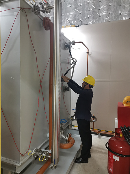 11月7日凌晨6點(diǎn),東方剛露出魚(yú)肚白。孫利勤踏著(zhù)晨露,帶著(zhù)虹潤產(chǎn)品和測試安裝設備馬不停蹄來(lái)到了珠海港口,經(jīng)過(guò)2個(gè)多小時(shí)的海上跋涉,終于到了海上風(fēng)電升壓站現場(chǎng),對于客戶(hù)提到的技術(shù)要求,孫利勤先是對現場(chǎng)環(huán)境進(jìn)行測試和判斷,與客戶(hù)認真溝通制定了技術(shù)應用方案,并于次日成功安裝。虹潤儀表現場(chǎng)表現良好,對海上升壓站TC690L柴油發(fā)電設備液位控制精度高且運行穩定,得到了客戶(hù)的好評。解決了客戶(hù)的技術(shù)需求,虹潤人的心也放下了,這次跨越大海的技術(shù)服務(wù)終于不辱使命。