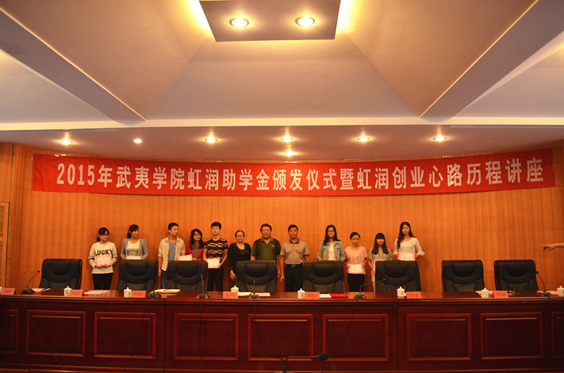 學(xué)生處處長(cháng)廖斌宣讀了《關(guān)于公布2014-2015學(xué)年“武夷學(xué)院虹潤助學(xué)金”獲得者名單的通知》。生態(tài)與資源工程學(xué)院2013級化學(xué)工程與工藝專(zhuān)業(yè)于海星作為學(xué)生代表做了發(fā)言,她表達了對林善平先生及學(xué)校的感激之情,表示要奮發(fā)圖強,勤奮學(xué)習,積極參加各類(lèi)志愿服務(wù)和社會(huì )實(shí)踐活動(dòng),永懷感恩之心,在以后的工作和學(xué)習中,奉獻社會(huì )。