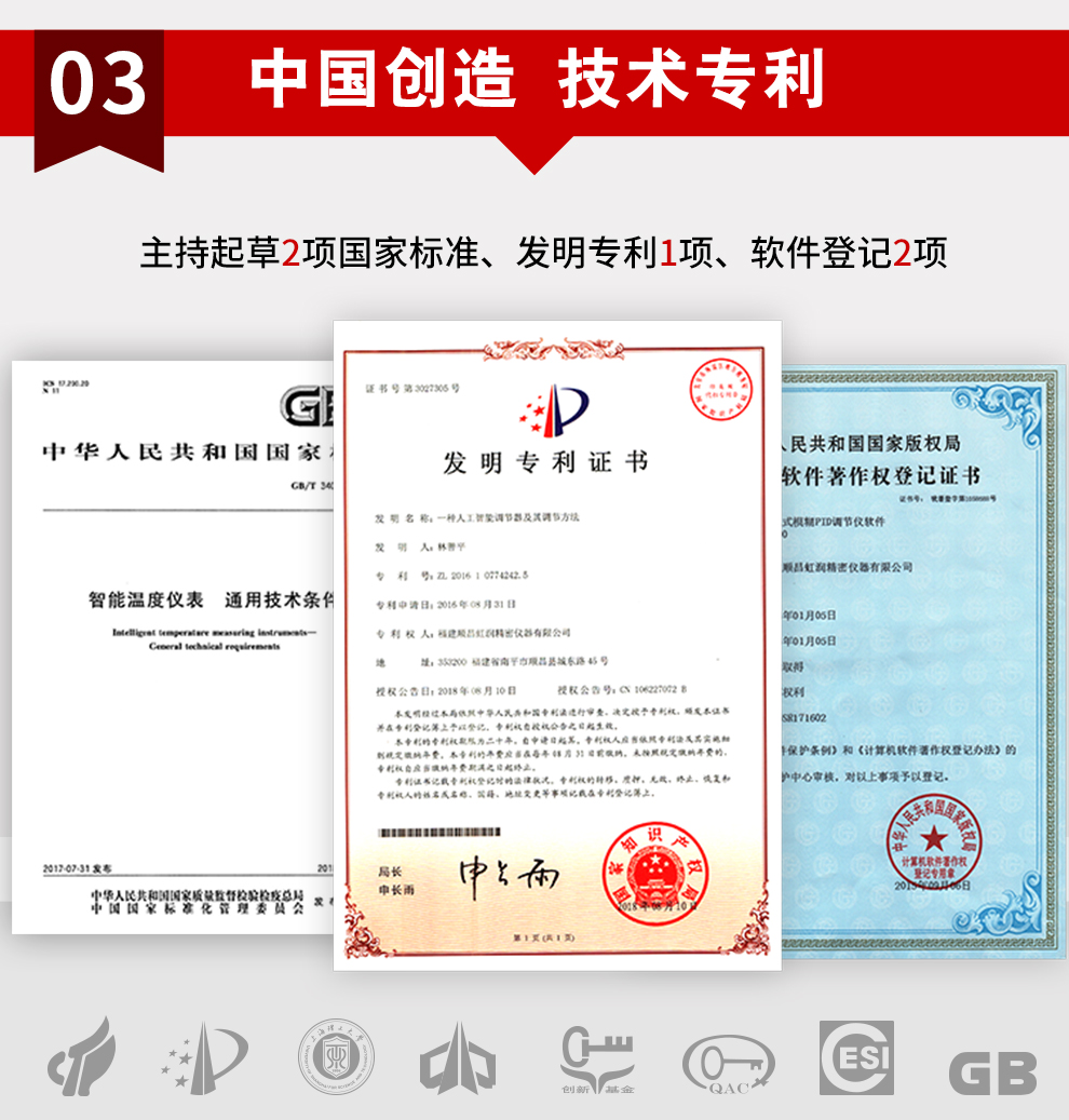 虹潤公司是專(zhuān)業(yè)生產(chǎn)溫控器的國家專(zhuān)精特新“小巨人”企業(yè)。生產(chǎn)的程序閥門(mén)溫控器,具有50段溫控程序控制,真正人工智能算式,無(wú)需人工整定參數,控制精度可達±0.1°C,加熱制冷雙向控制等特點(diǎn)。產(chǎn)品獲得模糊PID控制儀及控制方法、人工智能調節器、智能化控制器、移相觸發(fā)控制器、閥門(mén)自動(dòng)手動(dòng)無(wú)擾動(dòng)操作控制方法及裝置等5項國家發(fā)明專(zhuān)利,主持起草智能溫度儀表通用技術(shù)條件、工業(yè)過(guò)程控制系統用模擬輸入兩位或多位輸出儀表、工業(yè)過(guò)程測量和控制系統用智能調節器等3項國家標準,,以及通信系統多通道數據采集控制終端規范軍用標準,參與國際5G標準制定,取得增強型分段調節器等3項相關(guān)軟件著(zhù)作權。產(chǎn)品廣泛應用于電力、石化,冶金、制藥、食品等幾乎所有工業(yè)現場(chǎng),實(shí)現精準控溫,保障生產(chǎn)安全與質(zhì)量。