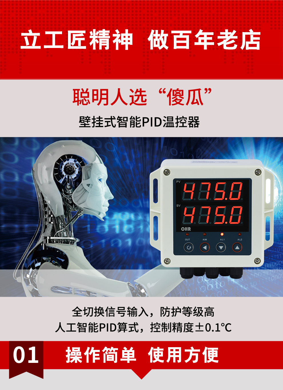 虹潤公司是專(zhuān)業(yè)生產(chǎn)溫控器的國家專(zhuān)精特新“小巨人”企業(yè)。生產(chǎn)的壁掛式PID溫控器,具有全切換信號輸入,真正人工智能算式,控制精度達士0.1°C,防護等級高,RS485通訊輸出DN等特點(diǎn)。產(chǎn)品獲得模糊PID控制儀及控制方法、人工智能調節器、智能化控制器、移相觸發(fā)控制器、閥門(mén)自動(dòng)手動(dòng)無(wú)擾動(dòng)操作控制方法及裝置等5項國家發(fā)明專(zhuān)利,主持起草主持起草工業(yè)過(guò)程控制系統用模擬輸入兩位或多位輸出儀表、物聯(lián)網(wǎng)智能溫度儀表通用技術(shù)條件、工業(yè)過(guò)程測量和控制系統用智能調節器等3項國家標準,以及通信系統多通道數據采集控制終端規范軍用標準。參與國際5G標準制定,取得傻瓜式PID調節儀等3項相關(guān)軟件著(zhù)作權。產(chǎn)品廣泛應用于電力、石化,冶金、制藥、食品等幾乎所有工業(yè)現場(chǎng),實(shí)現精準控溫,保障生產(chǎn)安全與質(zhì)量。