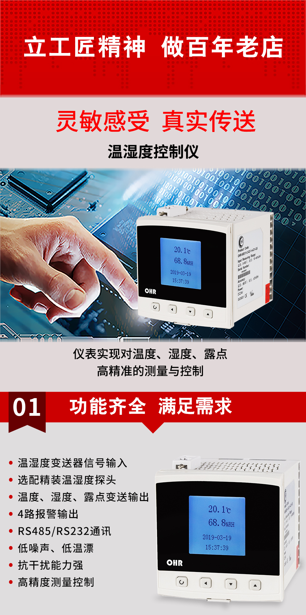 虹潤公司是專(zhuān)業(yè)生產(chǎn)環(huán)境監測儀表的國家專(zhuān)精特新“小巨人”企業(yè)。生產(chǎn)的盤(pán)裝式溫濕度控制器,具有溫度、濕度、露點(diǎn)高精準的測量,壁掛式結構,IP65防護穩定性強,高抗干擾,帶RS485/RS232通訊輸出等級等特點(diǎn)。產(chǎn)品獲得一種手持式低功耗溫濕度檢測儀、大屏幕溫濕度記錄儀等2項國家發(fā)明專(zhuān)利,主持起草物聯(lián)網(wǎng)智能溫度儀表通用技術(shù)條件、冷鏈溫度記錄儀等2項國家標準,通信系統多通道數據采集控制終端規范軍用標準,以及現場(chǎng)設備集成等5項智能制造國家標準,參與國際5G標準制定,取得溫濕度儀表等2項相關(guān)軟件著(zhù)作權。產(chǎn)品廣泛應用于工業(yè)現場(chǎng)、農業(yè)大棚、倉儲物流、地下管廊、養殖孵化、配電機房等諸多領(lǐng)域。