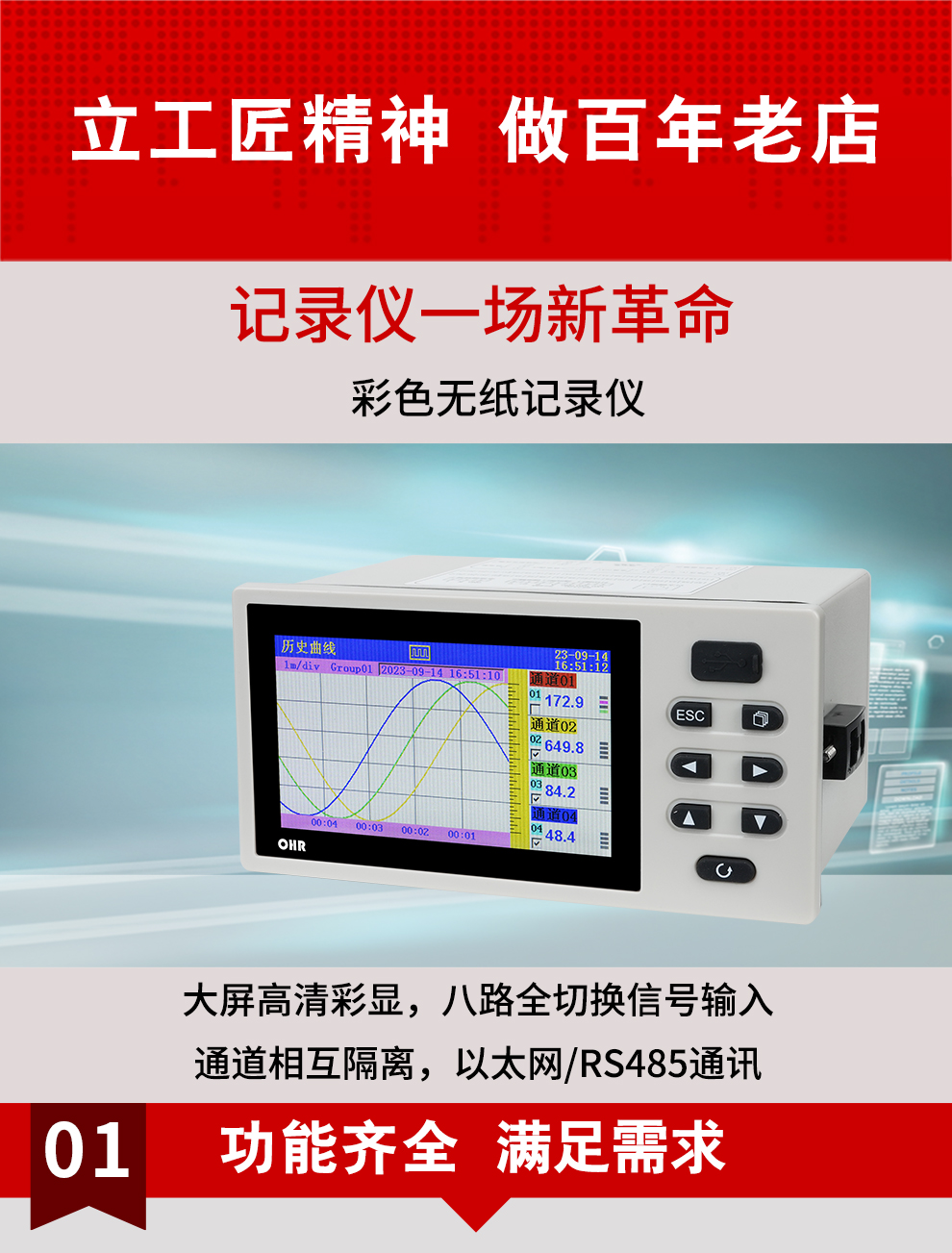 OHR-G100T系列彩色無(wú)紙記錄儀