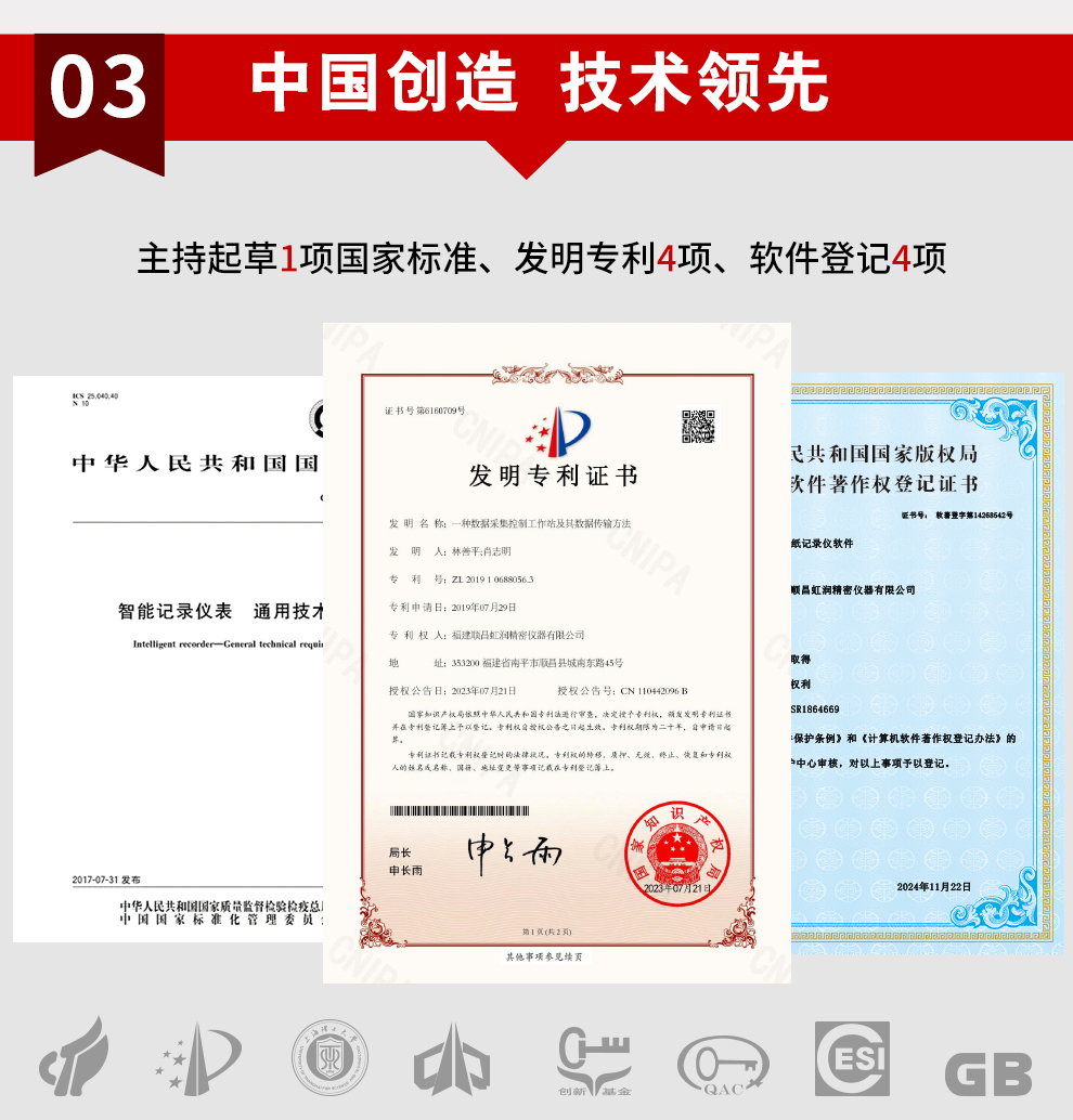 虹潤公司是專(zhuān)業(yè)生產(chǎn)水質(zhì)分析儀的國家專(zhuān)精特新“小巨人”企業(yè)。生產(chǎn)的水質(zhì)多參數監測記錄儀,具有多參數采集同屏顯示,數據記錄與轉存,支持WiFi或4G實(shí)現數據云方案,內置與外配組態(tài)軟件等特點(diǎn)。產(chǎn)品獲得一種適應性強PH控制儀、嵌入式數據采集工作站、數據采集控制工作站、無(wú)紙記錄儀、智能化控制器等5項國家發(fā)明專(zhuān)利;主持起草通信系統多通道數據采集控制終端規范軍用標準,物聯(lián)網(wǎng)智能記錄儀表通用技術(shù)條件國家標準,以及現場(chǎng)設備集成等5項智能制造國家標準,參與國際5G標準制定;取得PH無(wú)紙記錄儀等7項相關(guān)軟件著(zhù)作權。產(chǎn)品廣泛應用于實(shí)驗室、水處理、環(huán)境監測、食品、制藥、農業(yè)、工業(yè)流程控制等諸多領(lǐng)域。
