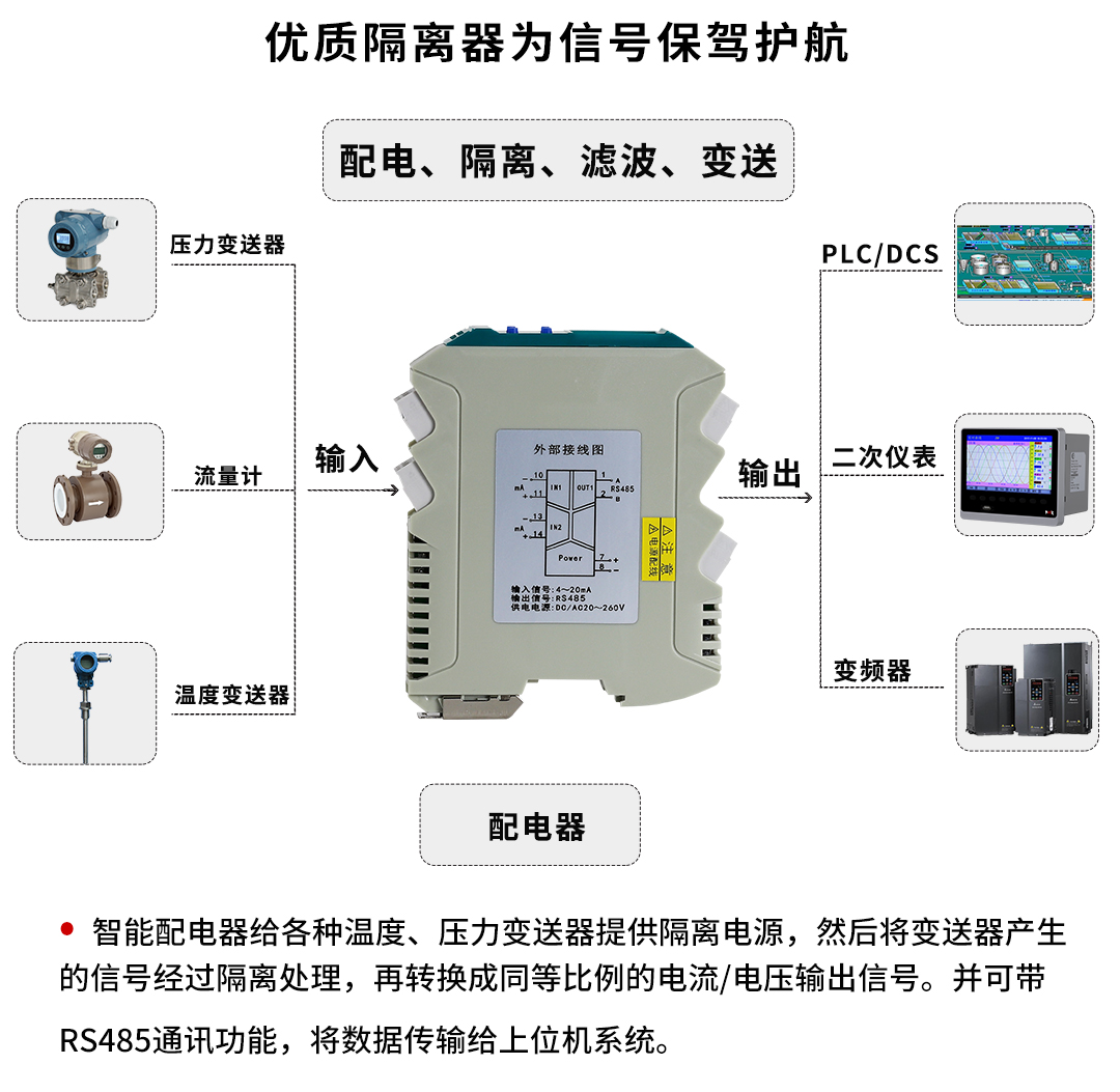 虹潤公司是專(zhuān)業(yè)生產(chǎn)隔離器的國家專(zhuān)精特新“小巨人”企業(yè)。生產(chǎn)的導軌式智能配電器,具有配接二三線(xiàn)制變送器,輸入輸出電源三隔離,響應時(shí)間快,傳輸精度0.1%FS,支持485通訊輸出等特點(diǎn)。產(chǎn)品獲得信號隔離器、一種二端子模塊、無(wú)源信號隔離器等3項國家發(fā)明專(zhuān)利,主持起草現場(chǎng)設備工具(FDT)接口規范、工業(yè)過(guò)程測量和控制系統用隔離式安全柵、工業(yè)過(guò)程測量和控制系統用配電器等3項國家標準,以及通信系統多通道數據采集控制終端規范軍用標準。參與國際5G標準制定。,取得智能隔離器等2項相關(guān)軟件著(zhù)作權。產(chǎn)品廣泛應用于石油、化工,冶金、電力、食品、光伏能源、污水處理等需要電隔離的工業(yè)自動(dòng)化控制系統。
