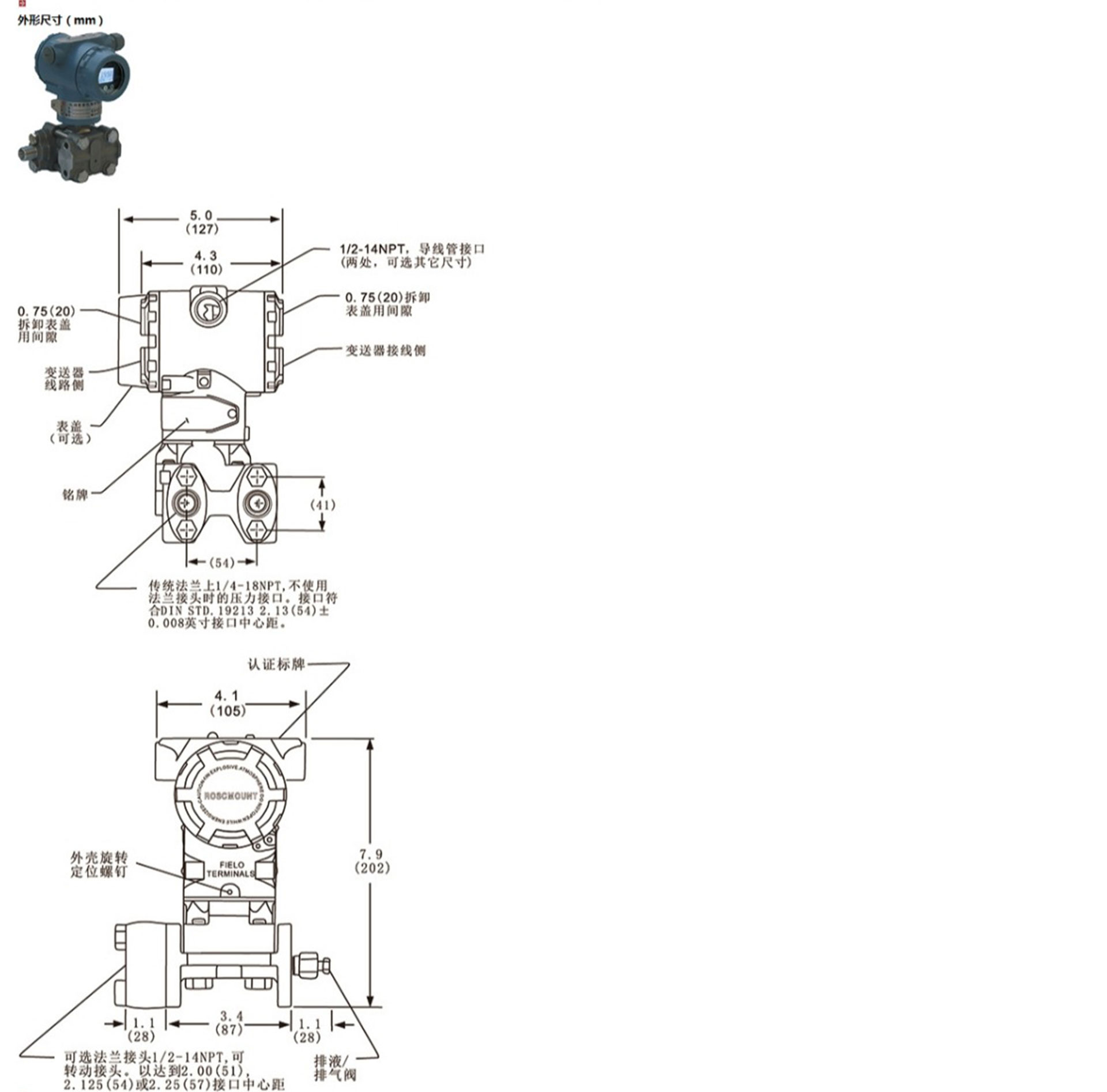 HR-3051AP型絕對壓力變送器的δ室(見(jiàn)下圖)一側接受被測絕對壓力信號,另一側被封閉成高真空基準室,然后將其轉換成4~20mA.DC信號輸出。它可以測量除氣系統、蒸餾塔、蒸發(fā)器和結晶器等的絕對壓力。