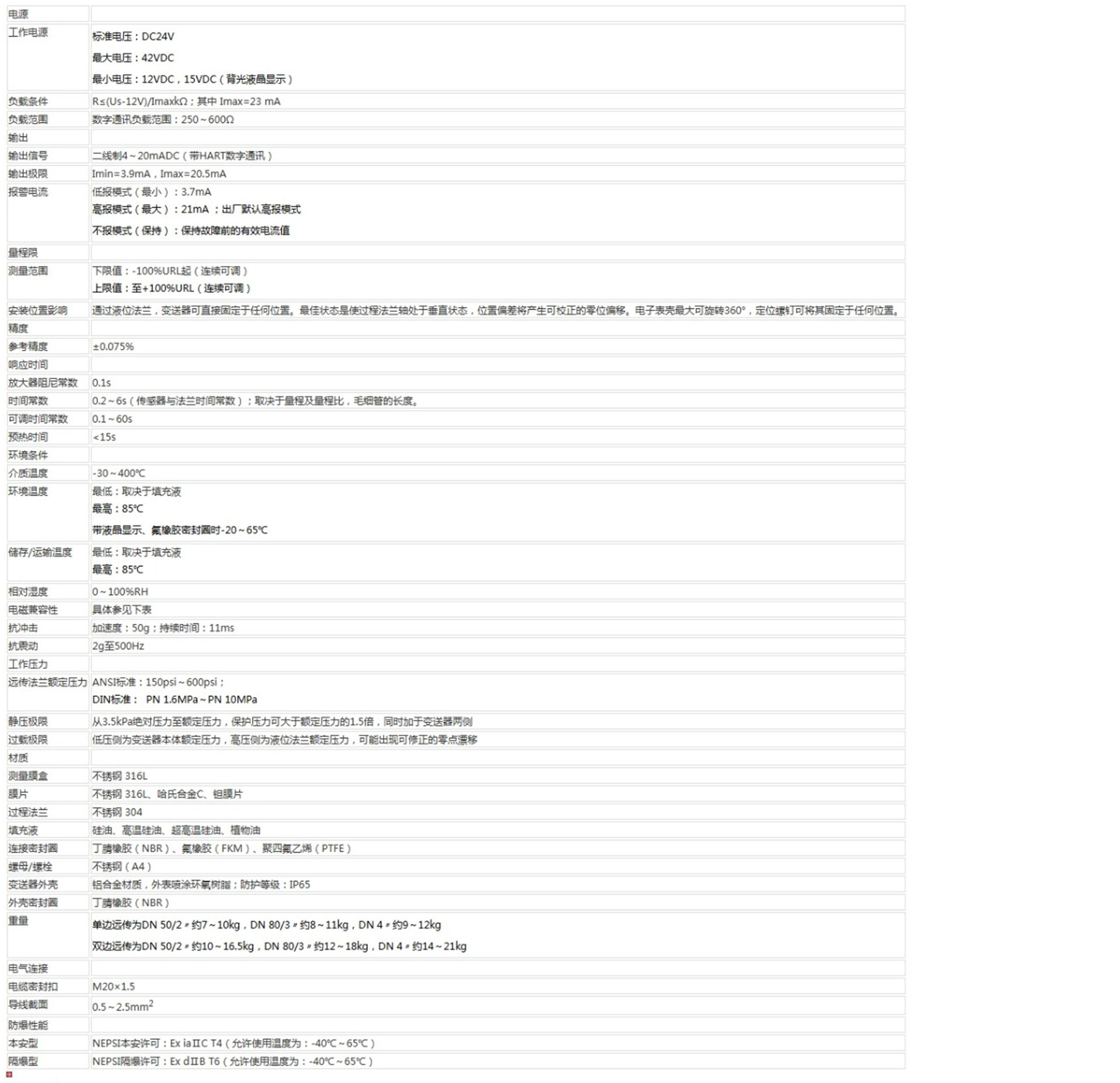 該產(chǎn)品用于測量液體、氣體或蒸汽的液位、密度、壓力,將其轉變成4~20mA (HART)電流輸出信號,可通過(guò)RST375手持終端對它們進(jìn)行參數設定、過(guò)程監控等。測量范圍(未遷移時(shí))為0-1kPa~2MPa,液位法蘭的額定壓力分別為:1.6/4MPa、6.4MPa、10MPa、150psi、300psi或600psi。